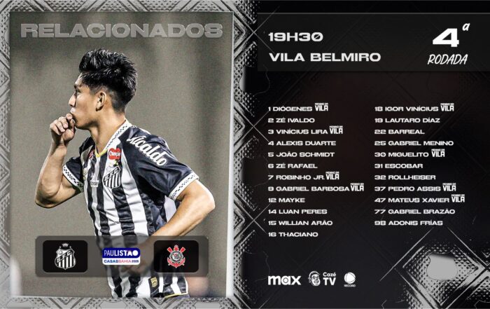 O zagueiro paraguaio Alexis Duarte é a grande novidade entre os relacionados do Santos para o clássico desta quinta-feira contra o Corinthians, às 19h30min, na Vila Belmiro, em partida válida pela quarta rodada do Paulistão 2026.