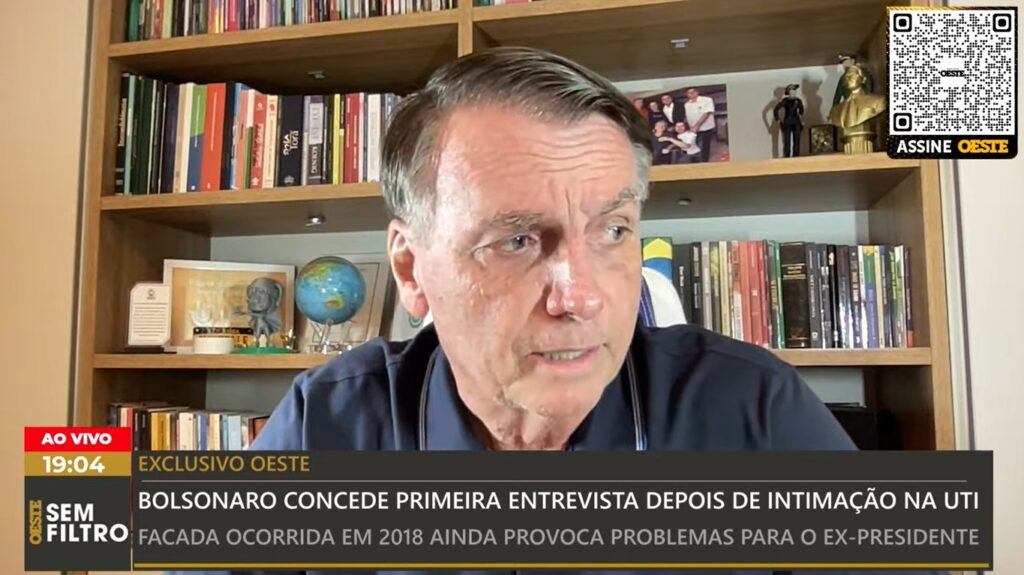 De acordo com Bolsonaro, Dino também deveria ser julgado, em virtude das declarações feitas em 2013. “Os juízes do STF são suspeitos”, disse. “Em primeira instância, o processo estaria arquivado.”
