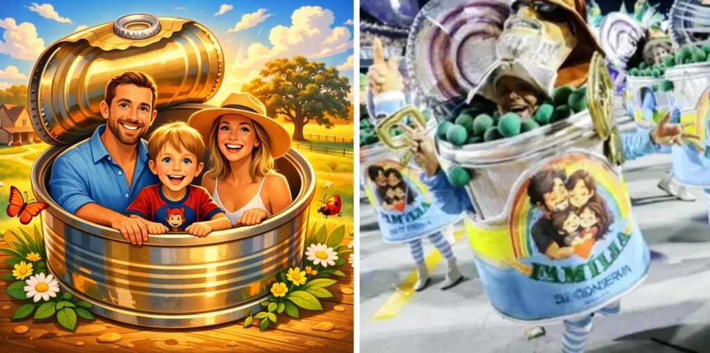 A imagem pode ser feita com ferramentas de IA, como ChatGPT e Gemini Google. As plataformas geram uma montagem digital que coloca pessoas dentro de recipientes, como latas ou potes, recriando visualmente a estética usada pela escola de samba. Com o avanço das versões criadas nas redes, o movimento passou a seguir dois estilos principais: uma versão ilustrada, com aparência de cartoon ou pintura digital, e outra mais realista, que simula uma lata metálica ou pote de vidro com efeitos visuais próximos de uma fotografia.