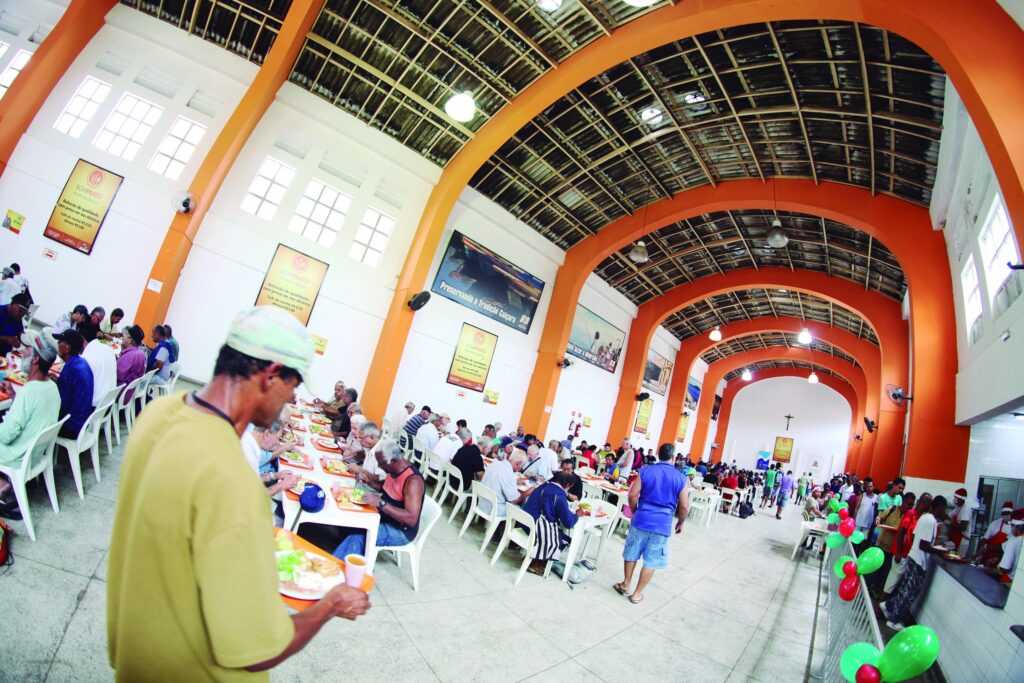 Lagarto bovino ao molho manteiga, nhoque ao sugo, salada carioca e, de sobremesa, bolo recheado com creme branco e geleia de morango. Este foi o cardápio desta sexta-feira (24) no Bom Prato do Mercado Municipal, em Santos. A unidade, pioneira na região, completou 20 anos, atendendo em uma área onde vivem (e por onde circulam) famílias de baixa renda e pessoas em condições de vulnerabilidade social, principalmente, população em situação de rua, que encontram ali café da manhã a R$ 0,50 e refeições a R$ 1,00.