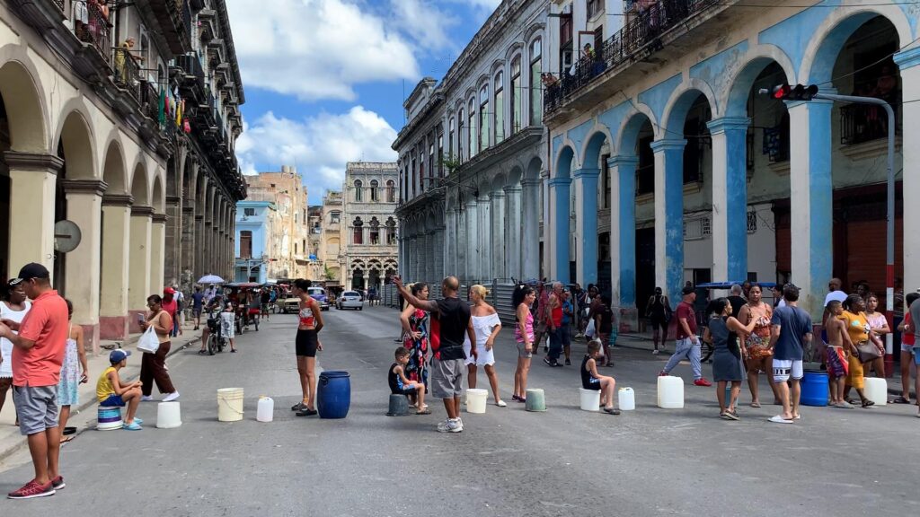 Diversos cubanos foram às ruas nesta terça-feira (19), em Havana, para protestar contra a prolongada escassez de água. Os manifestantes bloquearam avenidas com baldes e exigiram do regime comunista de Miguel Díaz-Canel soluções imediatas para a crise que atinge milhares de famílias na capital.