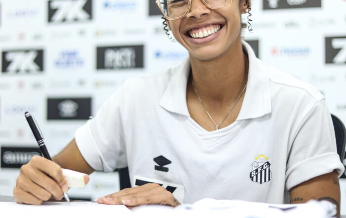 Evellyn Marques renovou com as Sereias da Vila até o final de 2026 (Crédito: Reinaldo Campos/SantosFC)