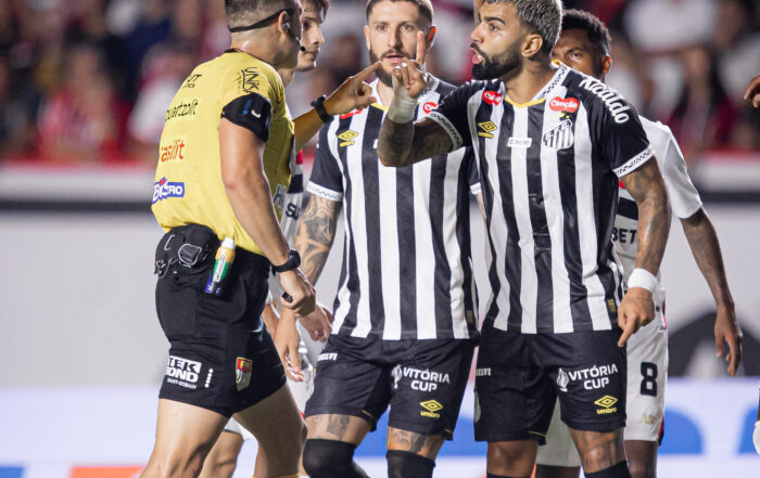 “Informo que ao término do primeiro tempo, quando a equipe de arbitragem ainda se encontrava em campo, adentrou e venho em nossa direção o sr. Alexandre Mattos identificado como diretor executivo de futebol do Santo FC, reclamando contra as decisões da equipe de arbitragem, proferindo as seguintes palavras: “ você não tem critério nenhum”, informo ainda que o mesmo nos acompanhou até a porta do vestiário da equipe de arbitragem e, de modo ostensivo, continuou contestando nossas ações durante o 1o tempo da partida”, descreveu Gobi sobre Mattos na súmula.