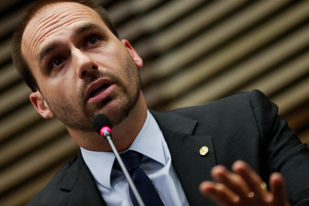 Os dois são acusados de articularem sanções dos Estados Unidos contra autoridades brasileiras para interferir no julgamento do ex-presidente Jair Bolsonaro (PL). Eduardo está nos EUA com a família desde março deste ano e já declarou que não pretende voltar ao Brasil.