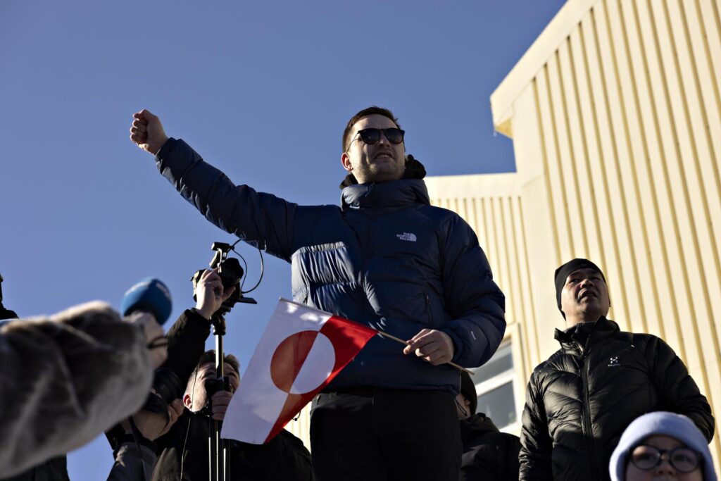 O premiê da Groenlândia, Jens-Frederik Nielsen (ao centro) (Foto: EFE/EPA/CHRISTIAN KLINDT SOELBECK )