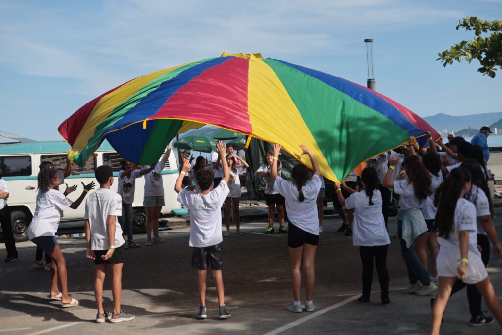 Domingo de sol e muita diversão para a criançada, assim foi a Semana Municipal do Brincar na orla de Santos. A programação, que teve início às 9 horas, com o evento “Brincar é Viver”, incluiu oficinas artísticas e educativas, com foco nas atividades esportivas, histórias contadas e, brincadeiras lúdicas. No mesmo horário, em frente ao antigo prédio da ETEC Escolástica Rosa, foi montada pela CET-Santos uma pista para oferecer orientações sobre segurança no trânsito.