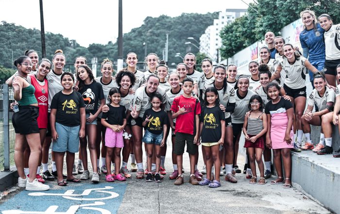 As Sereias da Vila receberam a visita da Abraccii (Associação Brasileira de Apoio e Combate ao Câncer Infanto Juvenil), no CT Rei Pelé, para acompanharem o treino da equipe nesta quinta-feira (09). As crianças em tratamento, acompanhadas de suas mães e irmãos, puderam conhecer bem de perto as atletas da equipe feminina do Santos FC. No último dia 8 foi celebrado o Dia Mundial da Luta Contra o Câncer.