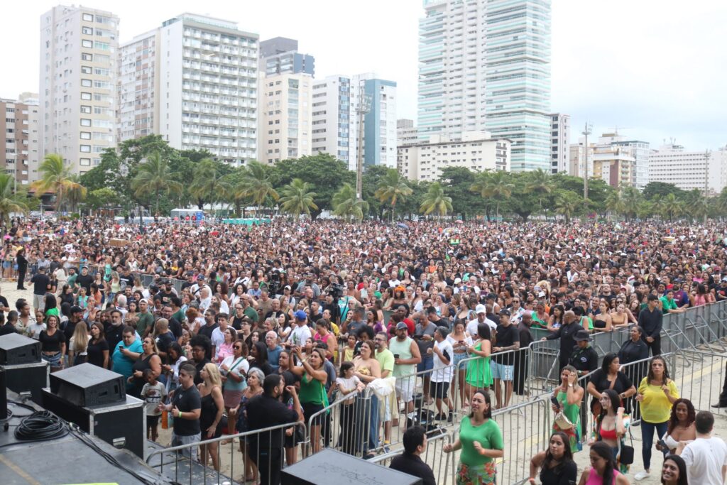 Setenta dias após o cancelamento do show de aniversário dos 479 anos de Santos, 80 mil pessoas curtiram a apresentação do cantor Thiaguinho, neste domingo (6), na Praia do Gonzaga.